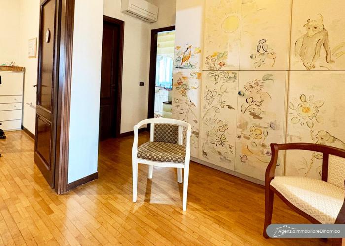 Al piano primo l’ingresso si apre su un salotto luminoso, collegato a una veranda che si affaccia sul verde del giardino, creando un ambiente arioso e piacevole da vivere. La zona notte comprende tre camere matrimoniali, una delle quali dotata di bagno privato, oltre a un secondo bagno e a un pratico ripostiglio.